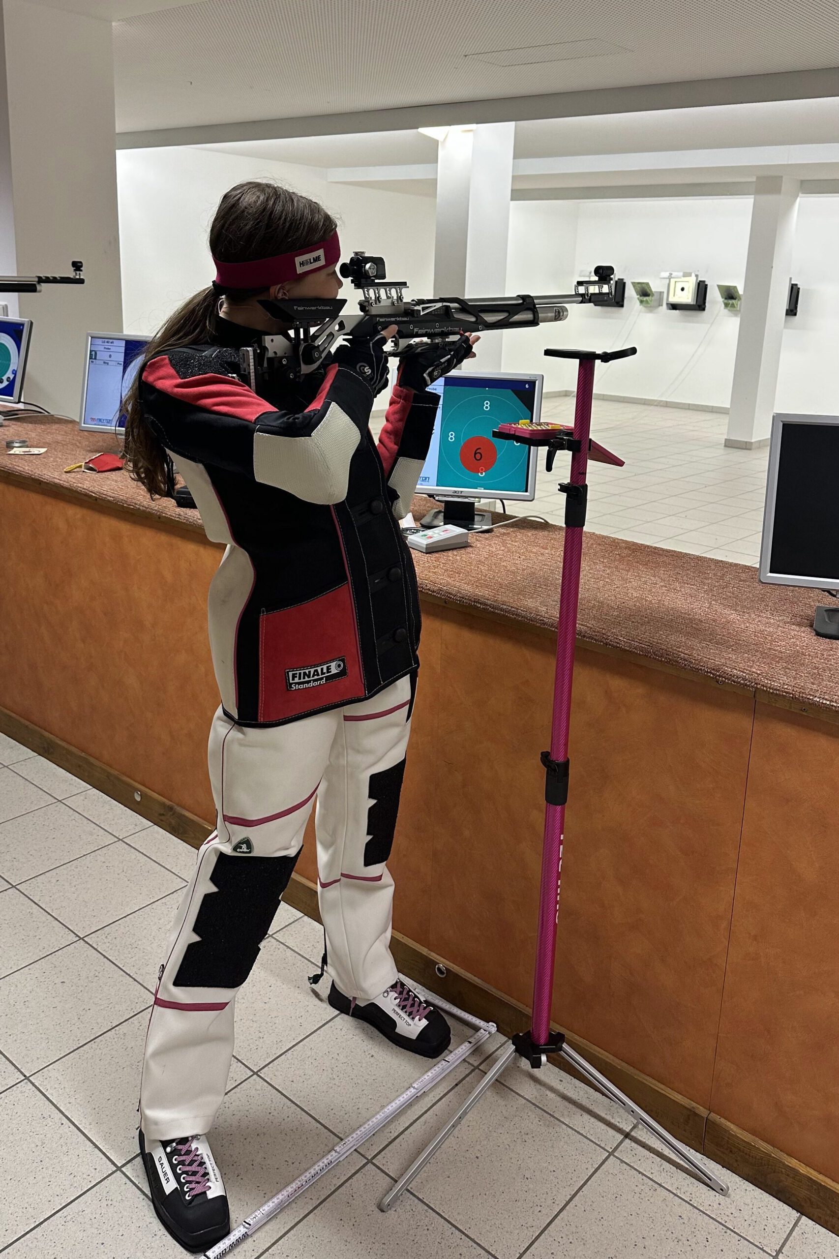 - Stehend frei: Geschossen wird ohne Unterstützung. Diese Disziplin fordert Konzentration, Körperbeherrschung und Präzision. Die Entfernung zur Zielscheibe beträgt 10 Meter.